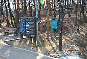 아래로 내려가는 계단 앞쪽에는 쉼터와 비둘기낭 안내판이 있습니다.