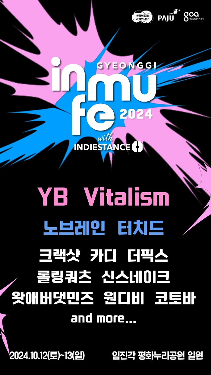 경기도 독립음악가집단(인디뮤지션들)의 최대 축제인 ‘경기인디뮤직페스티벌'이 2024년 10월 12일과 13일, 파주 임진각 평화누리공원에서 열립니다.