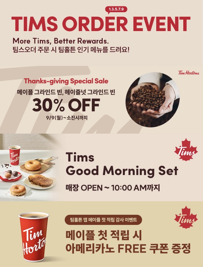 팀홀튼 한국은 전용앱이나 PC 홈페이지(https://www.tim-hortons.co.kr/) 모두,