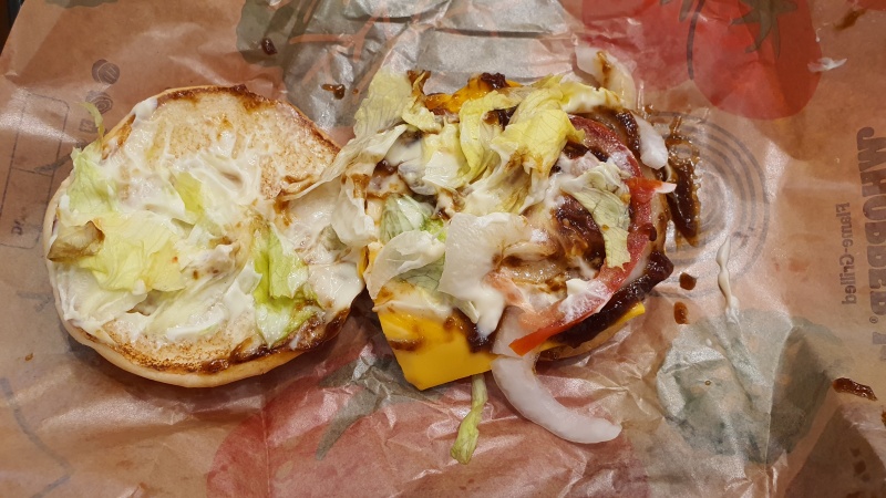 음식을 받고, 버거 뚜껑을 열어 봤습니다.