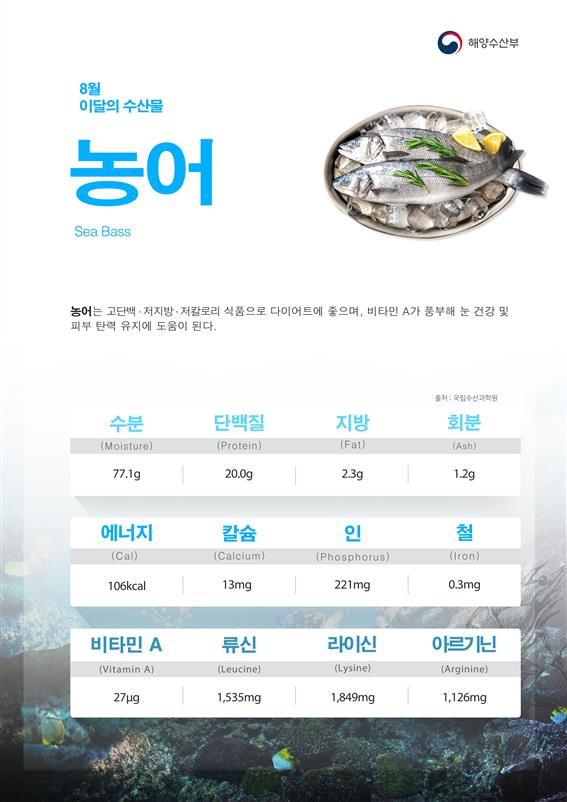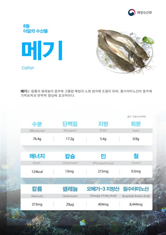 이달의 수산물 메기, 농어를 비롯한 수산물 관련 정보는 한국수산회 어식백세 누리집(네이버 블로그)에서 확인할 수 있습니다.