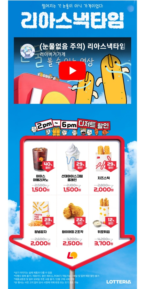 롯데리아에서는 매월 리아스낵타임이라고, 오후 시간대(오후2시~오후6시) 간식 몇 가지를 할인하는 행사를 합니다.