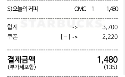 원모어커피 60% 할인( - 2,220원) 적용 하면