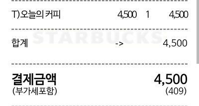 톨(Tall)용량 이상 주문시 혜택 적용하기 때문에, 이걸 선택하면 4,500원.