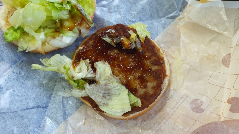 롯데리아 간판 음식 중 하나인 '데리버거', 내용물 중 패티를 한 장 더 넣은 게 더블데리버거죠.