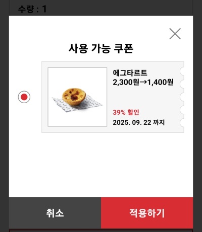 에그타르트의 경우, 매장 결제용과 앱주문(징거벨 오더)용 두 가지를 제공합니다.