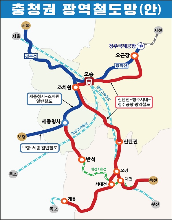 1. 신탄진~조치원~오송~청주시내~오근장(청주공항) : 광역철도