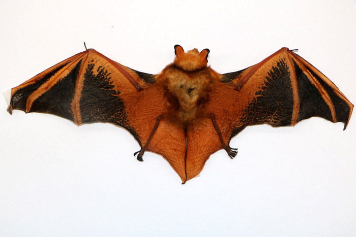 ‘붉은박쥐’는 몸길이가 4~6센티미터(cm) 정도로, 몸통 부분은 주황(오렌지)색을 띠고 귀바퀴와 날개막은 검은색이어서 일명 ‘황금박쥐’라고도 불립니다.