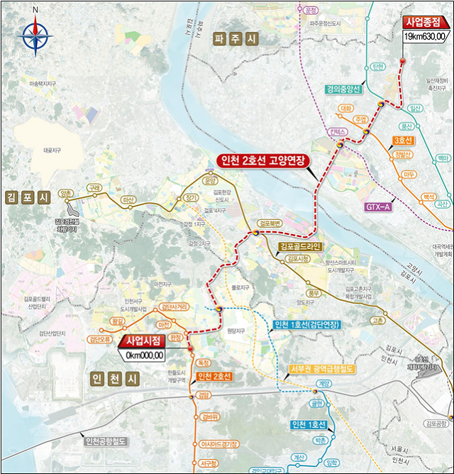 이번에 선정된 ‘인천2호선 고양 연장’은 19.63km에 정거장 12개소, 총 사업비 2조 830억원 규모의 사업으로 수도권 서북부 지역 교통혼잡난 해소함과 동시에 김포골드라인, 서울지하철3호선 일산선, 경의중앙선, GTX-A(2024년 개통) 환승역사를 통하여 서울 강남권으로의 접근성을 향상시킬 수 있는 노선입니다.
