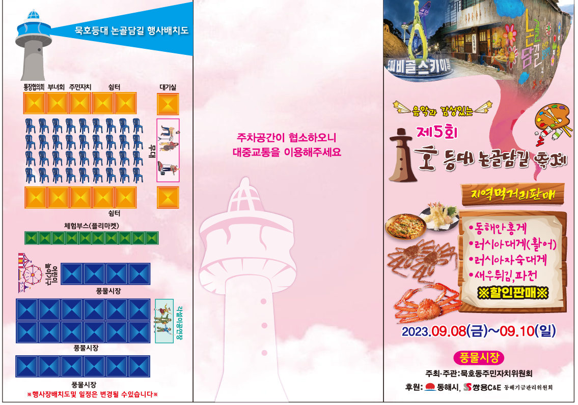 동해시(시장 심규언)는 2023년 9월 9일과 10일, 이틀간 묵호항 수변공원 일원에서 '제5회 묵호등대 논골담길 축제'를 개최합니다.