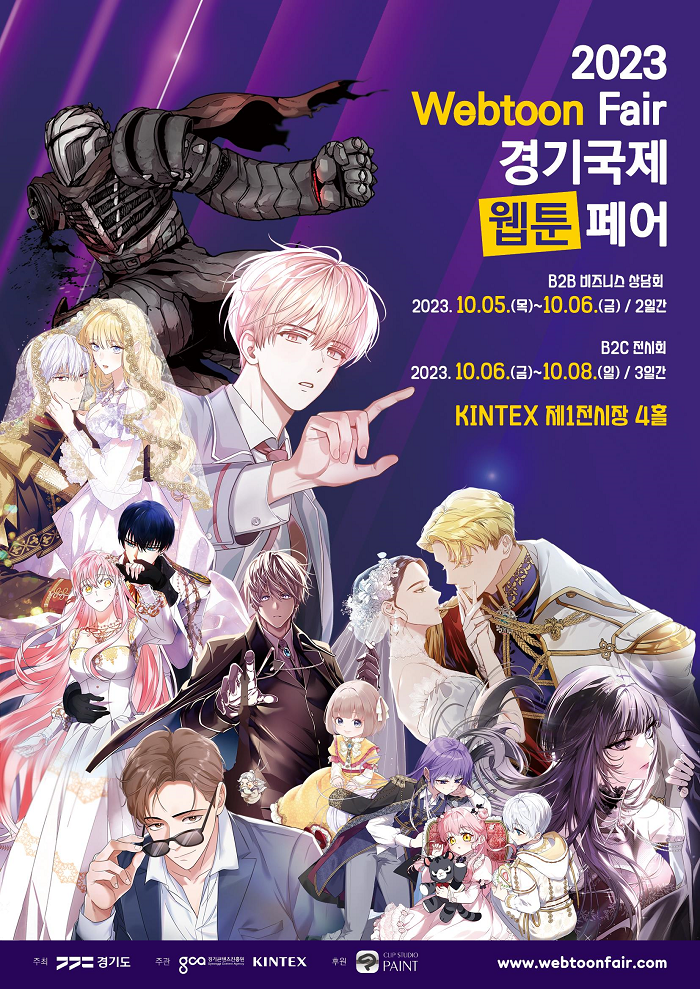 국내 최대 웹툰(webtoon) 특화 박람회인 ‘경기국제웹툰페어’가 2023년 10월 6일부터 8일까지 3일간, 경기 고양시 일산 킨텍스 제1전시장에서 열립니다.