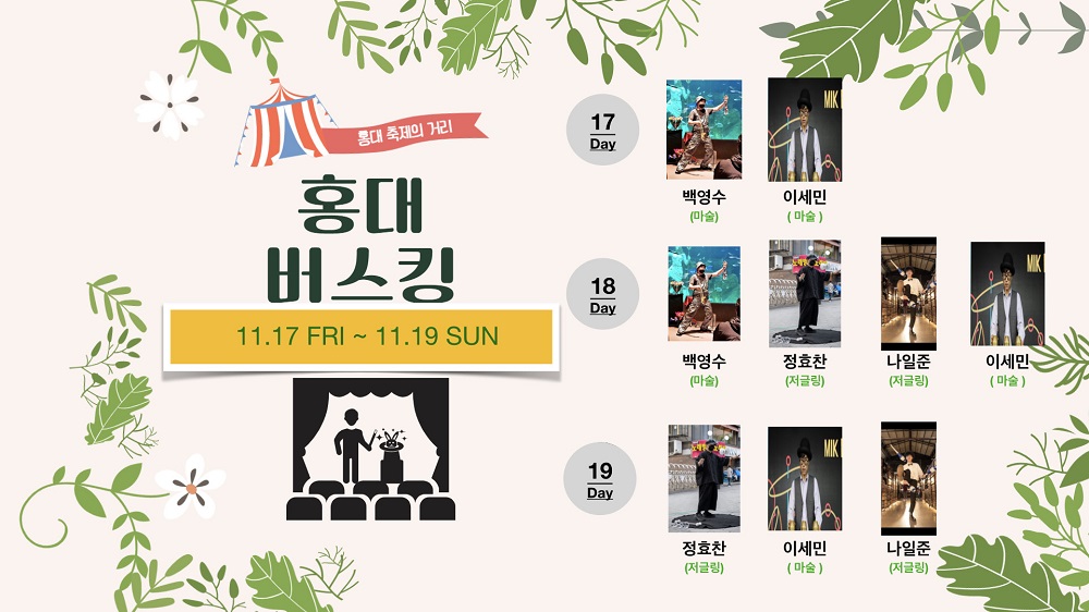11월 19일 : 이세민(마술), 정효찬(저글링), 나일준(저글링)
