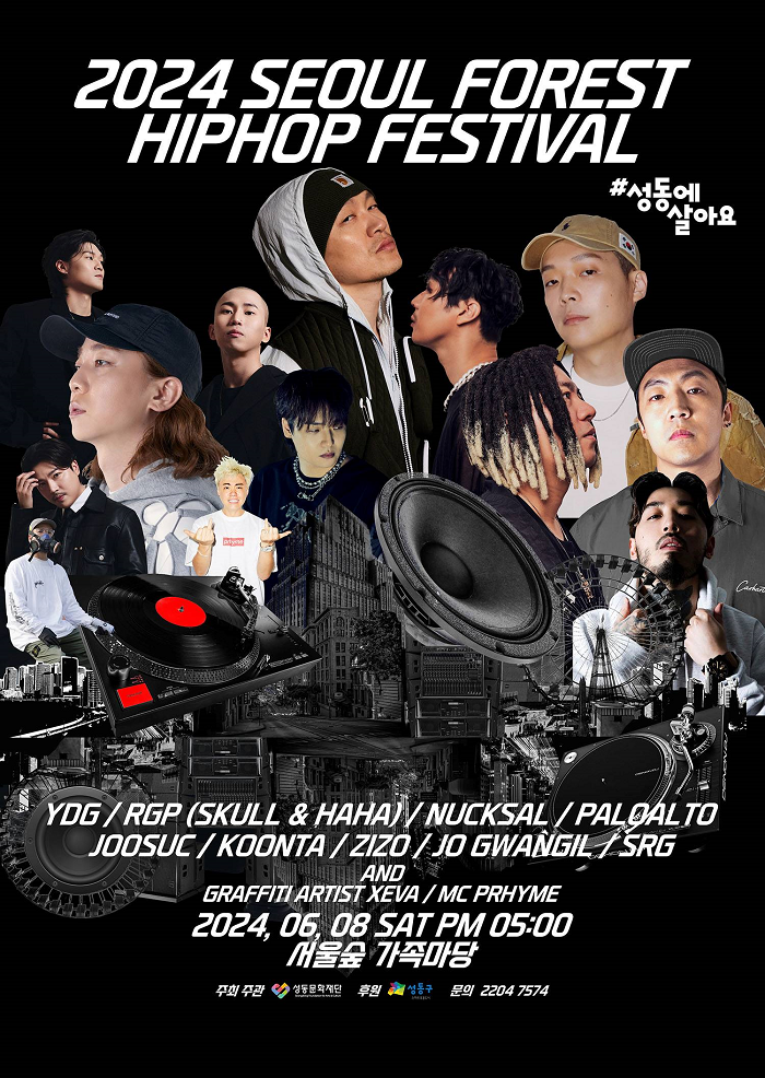 서울 성동구(구청장 정원오)가 2024년 6월 8일 오후 5시, 서울숲 가족마당에서 모든 세대가 함께 공감하며 즐길 수 있는 '서울숲 힙합 페스티벌'을 개최합니다.